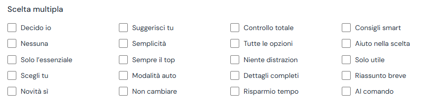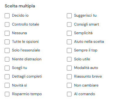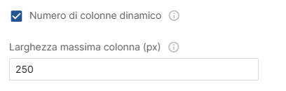 Scelte singole e multiple responsive: Nuova opzione per impostare un numero di colonne dinamico. Definendo una larghezza massima in px per colonna, la disposizione di adatta automaticamente.